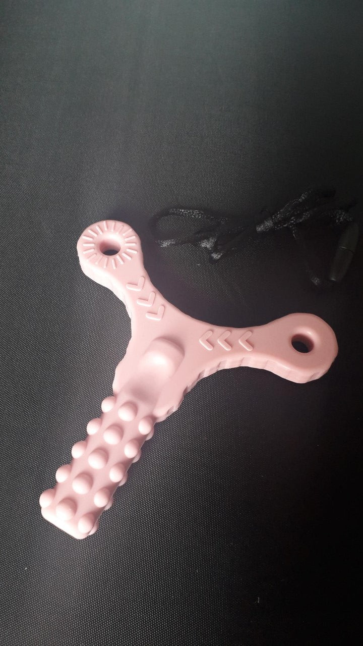 Silicone Chew Teether, Strong, Tough, Oral Therapy, With Safety Necklace, Pink